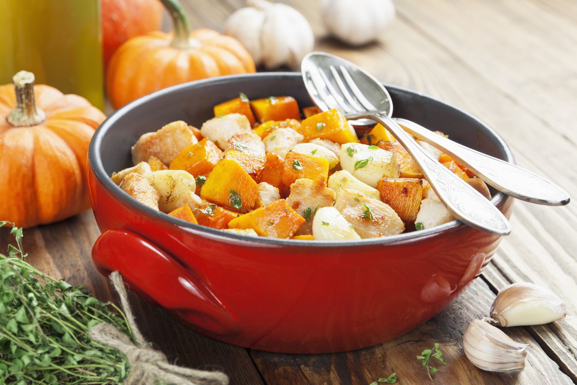 If you're anything like us, you don't like letting anything go to waste, so keep hold of those pumpkin skins and seeds, as you're going to need them for this delicious recipe! This delightful, aromatic sharing dish uses ALL parts of your pumpkin, bringing an abundance of textures and flavours to your dish. Ingredients: - 1 x whole pumpkin 2 x teaspoons fresh or lazy garlic 1 x teaspoon fresh red chilli, finely chopped 1 x bunch thyme, finely chopped 100g butter, melted 100g sea salt flakes 200ml vegetable oil 500ml white wine vinegar 200g sugar 750ml water 1 x bunch chives, finely chopped (to garnish) Method: - Firstly, preheat your oven to 180°C (fan-assisted). Then, b reak down the pumpkin by cutting the skin off in larger pieces, removing the seeds and separating from fleshy parts and chopping the main part of the pumpkin into approximately 1" x 1" cubes. Melt the butter in a bowl, then add the chilli, garlic, chopped thyme and 2 pinches of salt. Mix the chopped pumpkin with the melted butter and herbs. Place into a roasting tray ,or a ceramic roasting dish that has been lined with baking paper. Then top with more baking paper and cover the dish with foil and seal well. Roast for 30–35 minutes until the pumpkin is soft, then uncover and roast for a further 10–15 mins until the pumpkin has a lovely golden colour. While the pumpkin is roasting, prepare the pickle mix by adding the water, vinegar, sugar and 50g of salt to a saucepan & bring it to a boil. Simmer for about 5 mins. Chop the pumpkin skin into smaller pieces and blanch in boiling water for around 30 seconds. Strain the pumpkin skin, place it into a bowl and pour over the pickling liquid. Then set aside. To make the pumpkin seed praline, simply toast the seeds in a dry pan until they start to colour, then place them into a blender while still hot, cover with vegetable oil and blend until smooth. Once the pumpkin is finished roasting, sprinkle over the chopped pickled skins, then drizzle over some pumpkin seed praline and finish it off with a sprinkling of chives, if desired. Try it with some home/part-baked warm crusty bread and butter. You can thank us later! Top-Tip: Clean up as you go along.